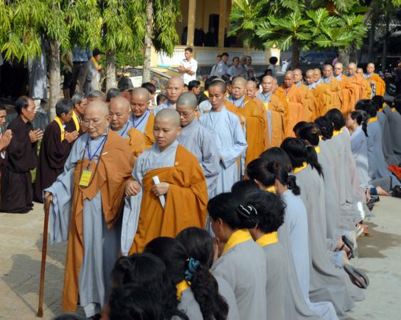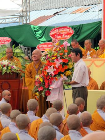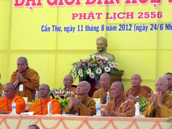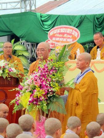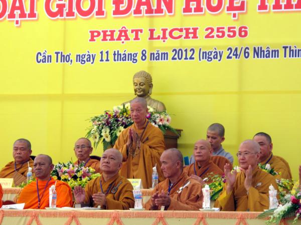 Sau cùng, HT.Thích Huệ Trường – Uỷ viên HĐTS GHPGVN – Phó trưởng Ban Thường Trực BTS Thành hội PG Cần Thơ thay mặt BTC nói lời cảm tạ Chư tôn Giáo phẩm Hòa thượng, Thượng toạ, quí Ni trưởng, Ni sư, chư Đại đức Tăng, Ni Trụ trì các Tự viện, Tịnh xá, Tịnh thất, Niệm Phật Đường cũng như chùa Long Quang, chùa Phước Long, chùa Tùng Thiên, chùa Bửu Trì, Tịnh thất Pháp Như, cùng đoàn đạo tràng Pháp Hoa, các đoàn Phật tử gần, xa đã nhiệt tình ủng hộ tinh thần, công quả, tài lực, vật dụng, v.v… Không chỉ vậy, BTC còn trân trọng biết ơn Đảng, Chính quyền, Ban Dân Vận, Mặt trận, Ban Tôn giáo, các cấp… tất cả đã tạo mọi điều kiện giúp cho việc tổ chức Đại Giới Đàn HUỆ THÀNH năm 2012 được thành tựu viên mãn.