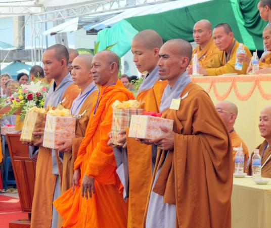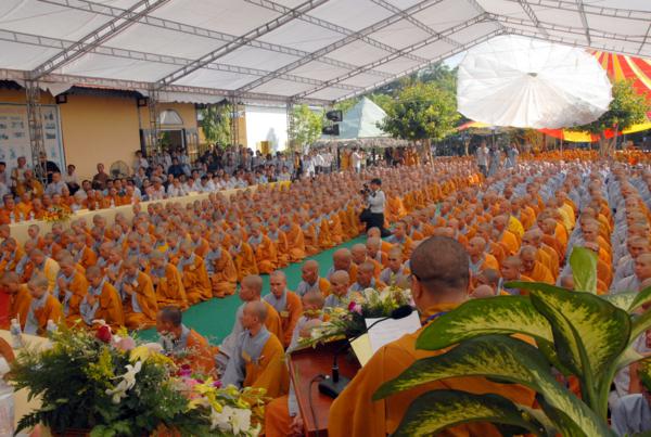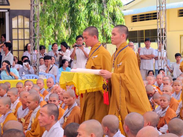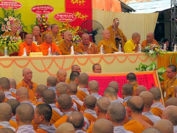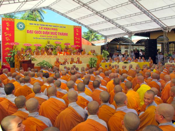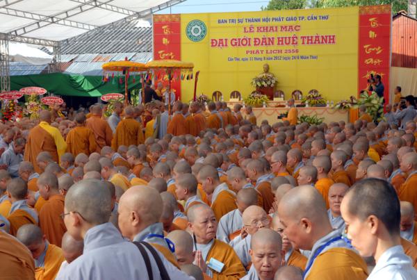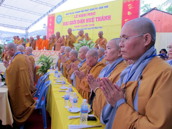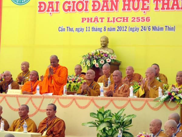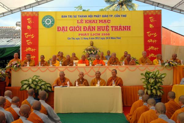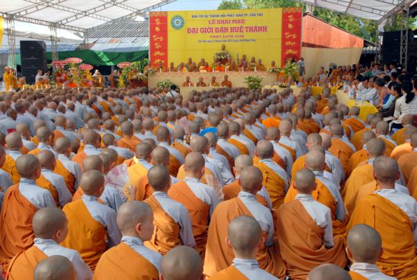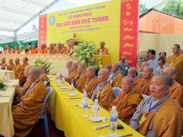 Trong Đại Giới Đàn này gồm có Ban Tổ Chức, Ban Giới Sư và các Tiểu Ban, đã tạo điều kiện thuận lợi, góp phần công đức cho Đại Giới Đàn được trang nghiêm, thanh tịnh và giúp cho các Giới tử được thọ nhận Giới pháp của Phật, thân tâm an lạc, Giới thể viên dung. Và trong giờ phút long trọng này, Hoà thượng Đào Như – Trưởng BTS Thành hội PG Cần Thơ tuyên bố khai mạc ĐẠI GIỚI ĐÀN HUỆ THÀNH.