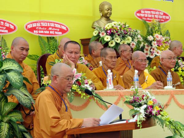 Phát biểu khai mạc Đại Giới Đàn, Hoà thượng Đào Như – Uỷ viên thư ký HĐTS GHPGVN – Trưởng BTS Thành hội PG TP.Cần Thơ, nêu rõ: