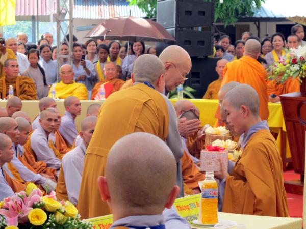 Sau phần nghi thức và phát nguyện thọ Giới của đại diện Giới tử, HT.Thích Trí Quảng, thay mặt TW Giáo hội PGVN ban đạo từ cho các Giới tử. Trong lời khuyến tấn, Hòa thượng nhấn mạnh vai trò Giới luật đối với người xuất gia trong giai đoạn hiện nay và nhắc nhở các Giới tử sau khi đắc Pháp – Giới thể châu viên, hãy tinh tấn trao dồi Tam Vô lậu Học, đồng thời cố gắng tu hành làm chủ tự thân, không để ngoại cảnh dục lạc cám dỗ chi phối, ngõ hầu nối gót Chư Tổ “Hành Như lai Sứ, tác Như Lai sự”.