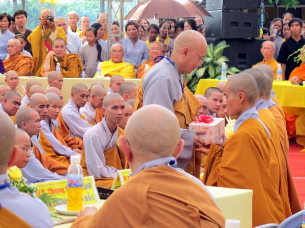Tại buổi lễ, BTC Giới đàn đã khen thưởng các Giới tử đạt thứ hạng I, II, III và khuyến khích trong kỳ khảo hạch thi viết và vấn đáp vào ngày 10/08/2012.