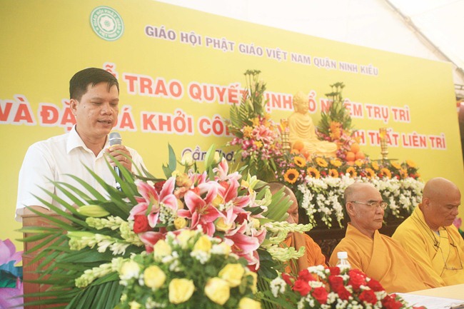 Sau phần biểu diễn trống hội của đoàn Lân Sư Rồng Chấn Hiệp Đường, ông Nguyễn Thanh Kiệt- Phó Trưởng Ban Tôn giáo Tp.Cần Thơ, thông qua công văn của UBND Tp.Cần Thơ về việc tiếp nhận đăng ký bổ nhiệm Trụ trì tịnh thất Liên Trì, Q.Ninh Kiều, Tp.Cần Thơ