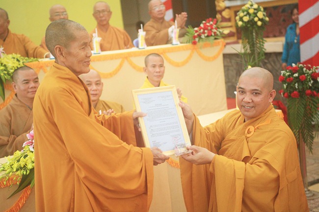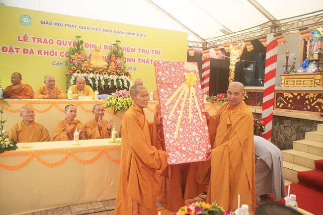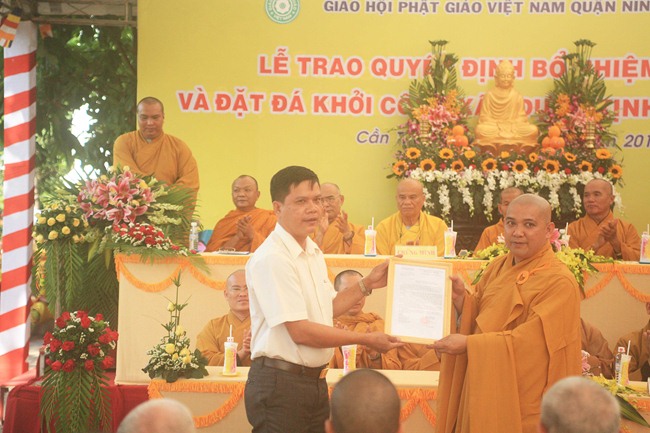 Tiếp đó TT Lý Hùng – Phó Trưởng Ban Trị sự GHGPVN TP.Cần Thơ kiêm Trưởng Ban Trị sự Q. Ninh Kiều thay mặt cho Thường trực Ban Trị sự GHPGVN Tp.Cần Thơ Thông qua quyết định bổ nhiệm Trụ trì cho ĐĐ Thích Trung Giới.
