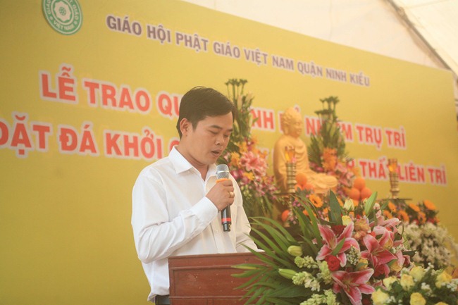 Tại buổi lễ ông Trương Hoàng Anh – Chủ tịch UBMTTQVN P.An Bình đại diện cho quý cấp chính quyền phát biểu: Ông có lời chúc mừng đến tân trụ trì và Chư tôn đức giáo phẩm Tp.Cần Thơ, ông mong rằng sau khi nhận nhiệm vụ cao cả này, tân Trụ trì sẽ không ngừng nỗ lực tu dưỡng trí tuệ và đạo đức, ra sức thực hiện nghĩa vụ công dân, khắc phục những mặt hạn chế trong việc đạo, việc đời, đề cao tinh thần hòa hợp của phật giáo, tăng cường khối đại đoàn kết dân tộc, đoàn kết tôn giáo, vì mục tiêu “Cứu khổ, độ sanh”, góp phần xây dựng xã hội mới, chân, thiện, mỹ đem lại cuộc sống tốt đẹp cho nhân dân.