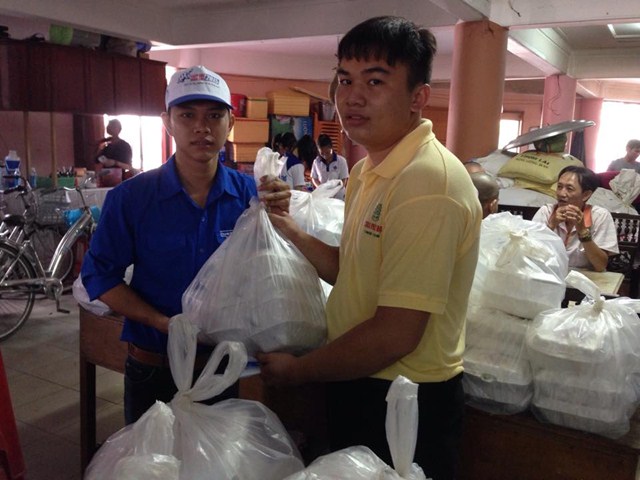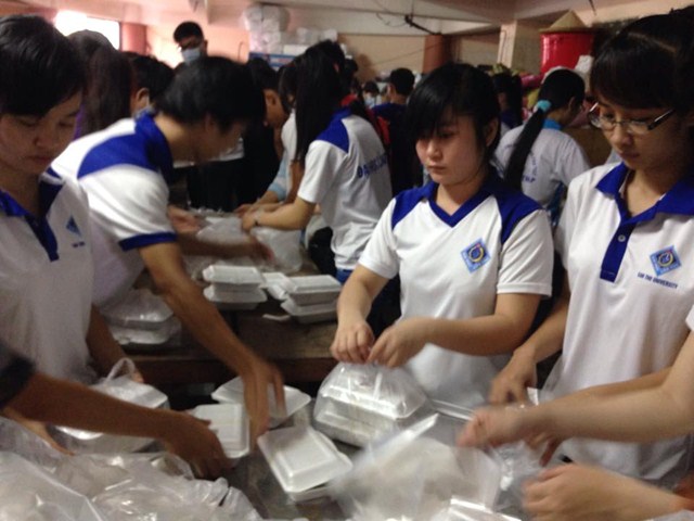 Các sinh viên tình nguyện của trường Đại học Cần Thơ và các Phật tử sẽ nhận cơm chay từ chùa Phật Học, sau đó di chuyển bằng xe máy tới các điểm thi trên địa bàn TP. Cần Thơ: thành đoàn Tp. Cần Thơ, trường CĐ kinh tế kỹ thuật Cần Thơ, trường THCS Chu Văn An, trung tâm anh ngữ Huyền Lê, trường Đại học Cần Thơ, chi Hội SV Trà Ôn… để phát cho các thí sinh và người nhà của các thí sinh dự thi.