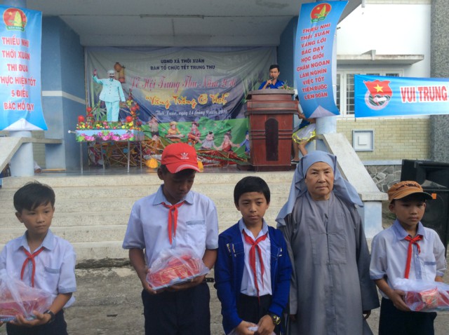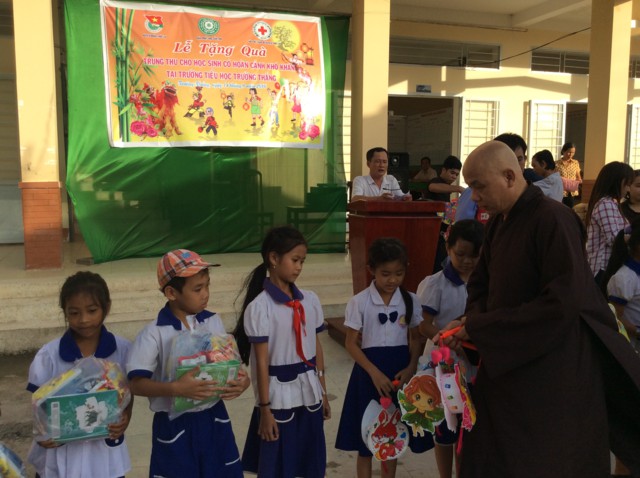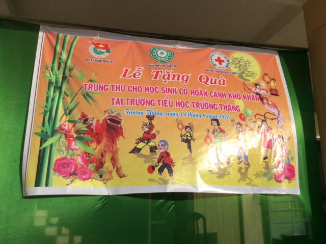 Nhân dịp này, Chư tăng chùa Phật học và các Phật tử đã trao tặng hơn 700 phần quà, bao gồm bánh trung thu, gạo, đèn lồng, tập viết…Với tổng giá trị gần 60 triệu đồng tại xã Thới Xuân, huyện Cờ Đỏ và trường tiểu học Trường Thắng, xã Trường Thắng, huyện Thới Lai, Tp. Cần Thơ. Tại các nơi đoàn lui tới, Đại đức Thích Minh Thông và Phật tử đã động viên thăm hỏi các cháu thiếu niên nhi đồng, chúc các cháu đón một cái tết trung thu ấm áp và hạnh phúc, chăm ngoan, học giỏi, nghe lời thầy cô.