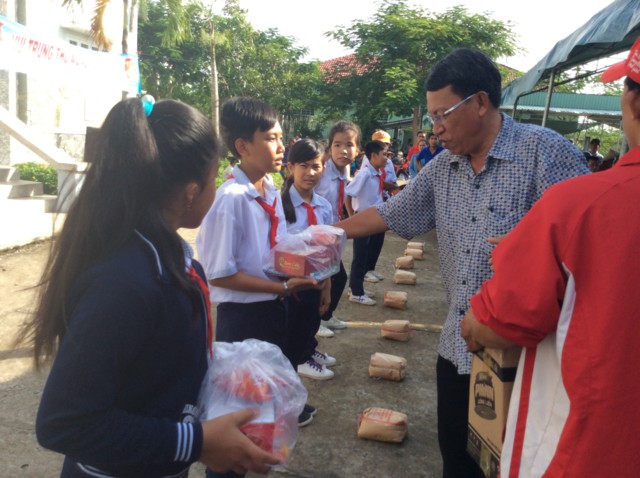 Tiếp đoàn từ thiện có ông: Lê Hùng Yên – Phó giám đốc sở Nội vụ thành phố Cần Thơ; ông: Võ Ngọc Hà – Phó trưởng Ban tôn giáo – Sở nội vụ thành phố Cần Thơ; ông: Lưu Quốc Thông – Chủ tịch Hội chữ thập đỏ huyện Thới Lai; ông: Lê Phúc Hậu – Phó chủ tịch Hội chữ thập đỏ huyện Thới Lai cùng các thầy cô giáo trong Ban giám hiệu trường tiểu học Trường Thắng, xã Trường Thắng, huyện Thới Lai, thành phố Cần Thơ.