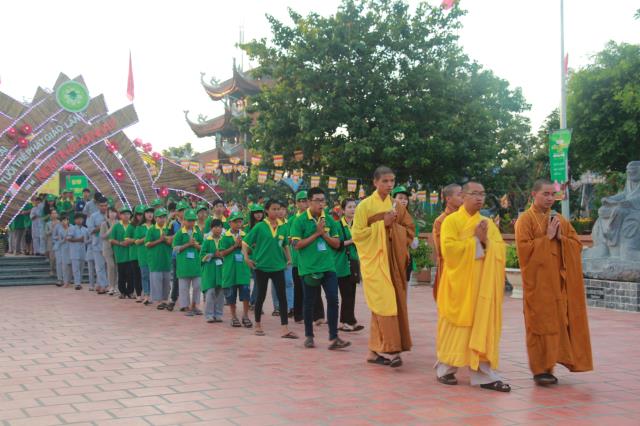 Các bạn thức dậy rất sớm và được chư tôn đức hướng dẫn tụng thời kinh Phước Đức buổi sáng. Sau đó, các bạn được hướng dẫn đi thiền hành xung quanh Thiền Viện Trúc Lâm Phương Nam, buông bỏ mọi âu lo, phiền muộn của cuộc sống đời thường, các bạn được trở về với chính mình, thở và cười trong giây phút hiện tại. Khóa lễ kinh hành kết thúc, các bạn trẻ được hướng dẫn tập thể dục buổi sáng, giúp thân thể khỏe mạnh, cường tráng, để có một ngày tu học thật tốt.