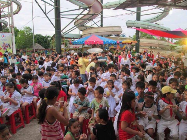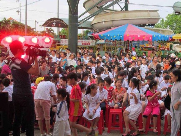 Trước khi khép lại chương trình trung thu năm nay, các em còn được rước đèn ông sao, rước đèn lồng và phá cỗ đêm trăng trong khuôn viên của công viên nước.