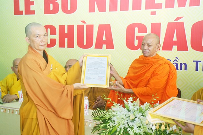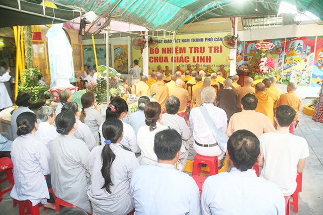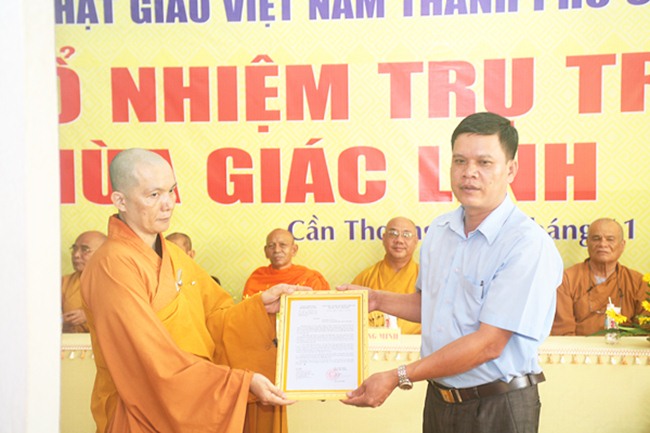 Sau tuyên bố lý do buổi lễ, ông Thạch Út Hậu – Phó Phòng Nghiệp vụ I Ban Tôn giáo đã thông qua công văn của UBND TP.Cần Thơ về việc bổ nhiệm trụ trì chùa Giác Linh, tiếp đến ông Nguyễn Thanh Kiệt – Phó Trưởng Ban Tôn giáo TP.Cần Thơ trao công văn đến ĐĐ Thích Thiện Đạo.
