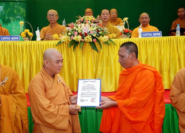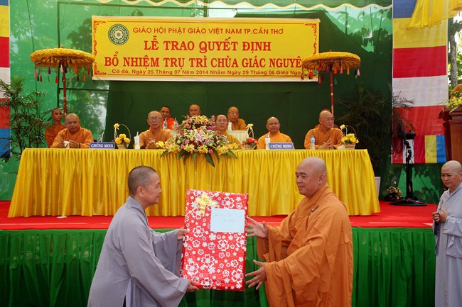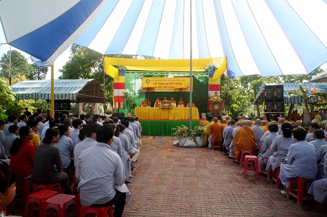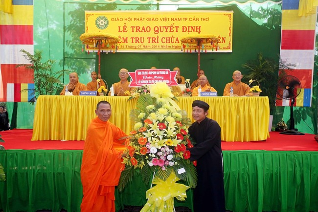 Tại buổi lễ Thượng Tọa Dương An Trưởng BTS GHPGVN Huyện Cờ Đỏ đã trao giấy quyết định bổ nhiệm trụ trì cho Đại đức tân trụ trì.