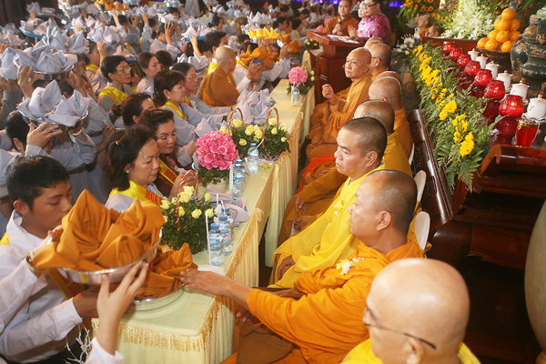 Một mình Mục Liên vô phương cứu mẹ, dù Ngài có thần thông đến đâu và lòng hiếu thảo của ông có thấu đến trời xanh cũng phải nhờ đến uy đức của chúng tăng khắp 10 phương đồng tâm hiệp ý mới cứu được tội của mẹ ông. Vì vậy Phật dạy Mục Liên phải thành tâm cung thỉnh chư Tăng khắp nơi đặc biệt là sau 3 tháng an cư trao dồi giới dức và đúng vào ngày rằm tháng 7. Sắm sanh lễ vật lập trai đàn để cầu nguyện và cúng dường trai tăng mới mong cứu được tội của mẹ ông.