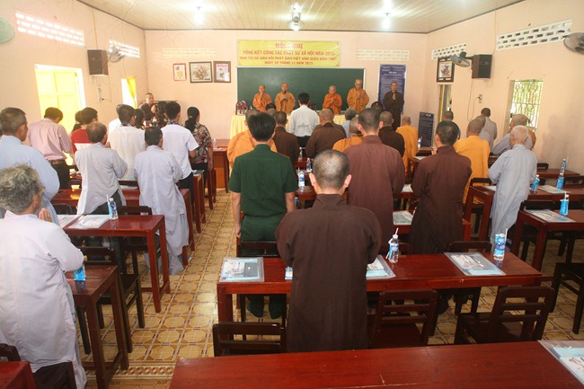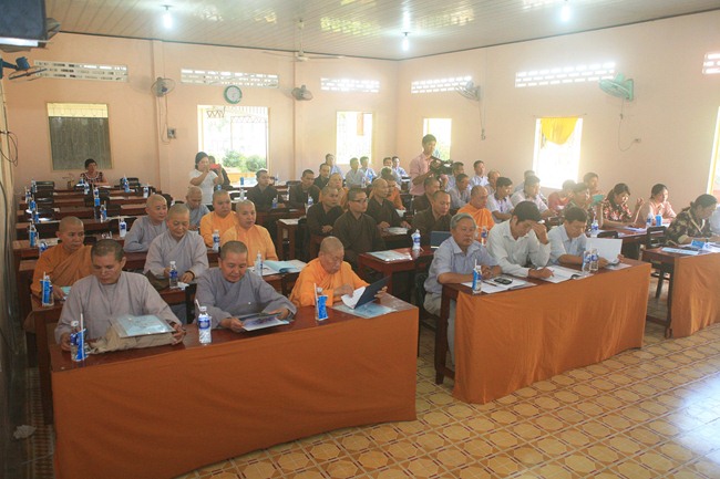 Mở đầu buổi họp ĐĐ Thích Bình Tâm – Phó Trưởng Ban Trị sự GHPGVN Tp.Cần Thơ kiêm Chánh Thư ký Ban Trị sự GHPGVN Tp.Cần Thơ thông qua bản báo cáo tổng kết công tác Phật sự xã hội (PSXH) năm 2015 và phương hướng hoạt động Quý I năm 2016. Theo đó, toàn quận Bình Thủy có 15 cơ sở tự viện trong đó có 02 chùa Di tích lịch sử cấp quốc gia. Về chư tăng Ni có 56 vị trong đó có 03 Hòa thượng, 01 Ni trưởng. Thực hiện theo sự chỉ đạo của HĐTS GHPGVN và sự hướng dẫn của Ban Trị sự thành phố, năm 2015 các tự viện trong địa bàn quận đã tiến hành thay đổi dấu mộc mới.
