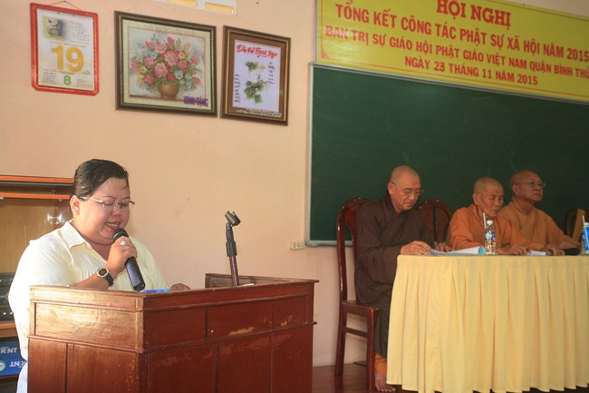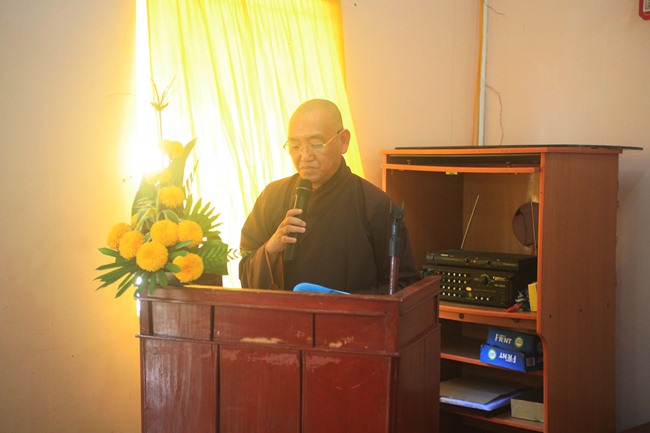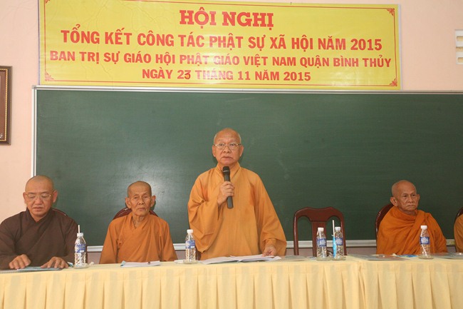 Tiếp đến HT Thích Thiện Tài – Phó Trưởng Ban Trị sự GHPGVN Tp.Cần Thơ, Trưởng Ban Trị sự GHPGVN Q.Bình Thủy đã có lời đúc kết các công tác PSXH của Ban Trị sự GHPGVN Q.Bình Thủy và thông qua một số thông tư của Trung Ương Giáo Hội.
