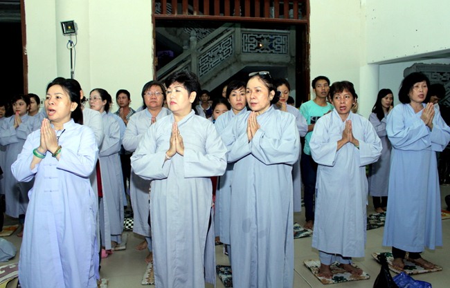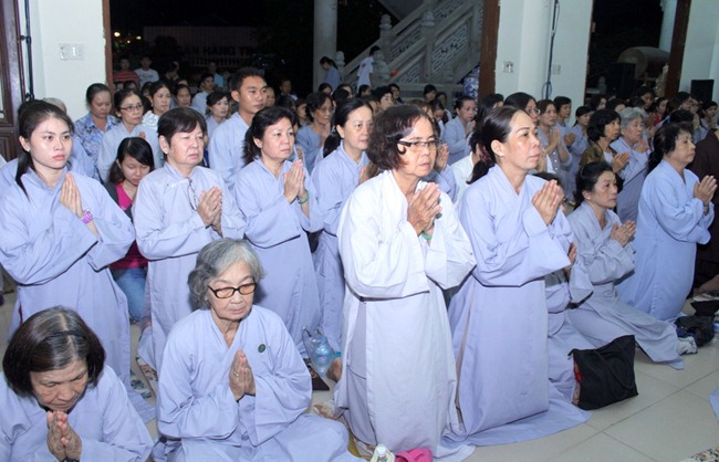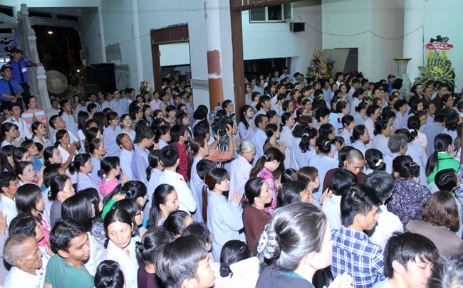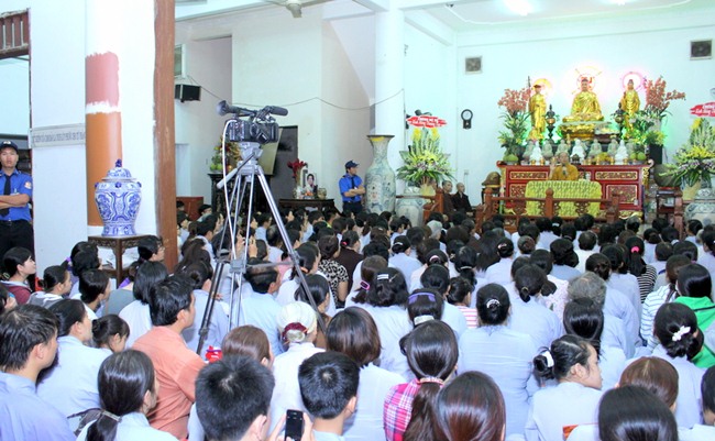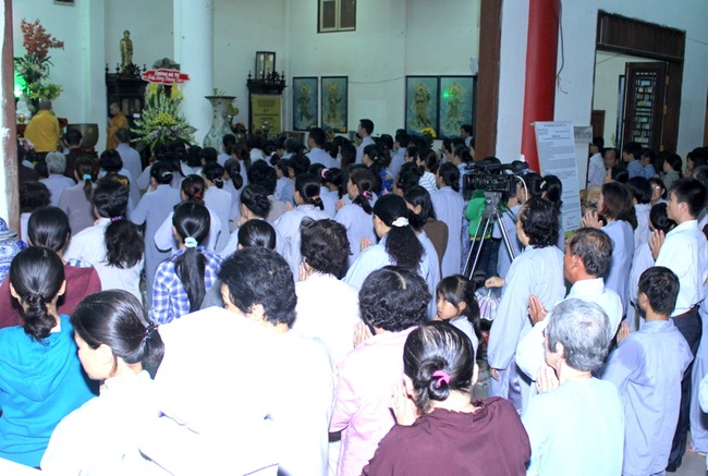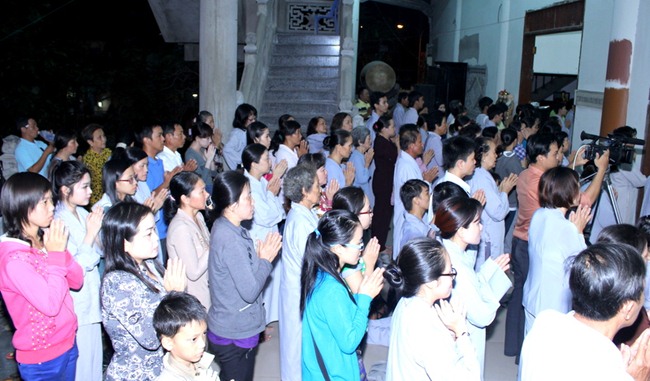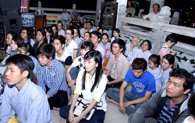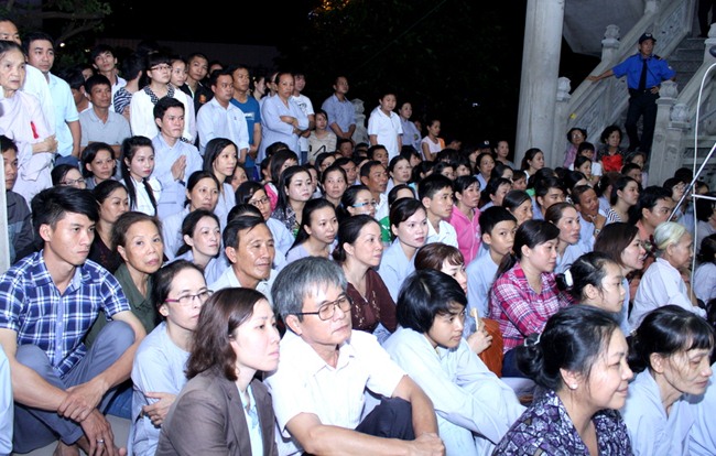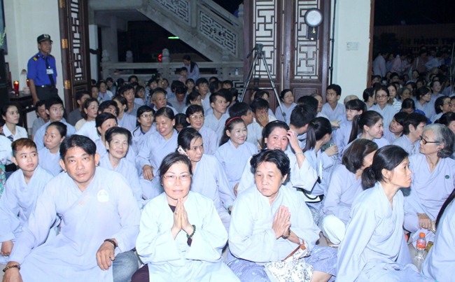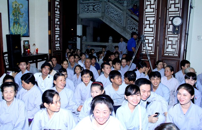 Buổi thuyết Pháp bắt đầu lúc 19h00″, cũng là thời điểm nhiều người đến chật kín cả chùa. Do chùa đang lúc xây dựng nên không gian có chật hẹp, xong BTC vẫn đón tiếp Chư tôn đức Tăng Ni và quý Phật tử rất chu đáo.