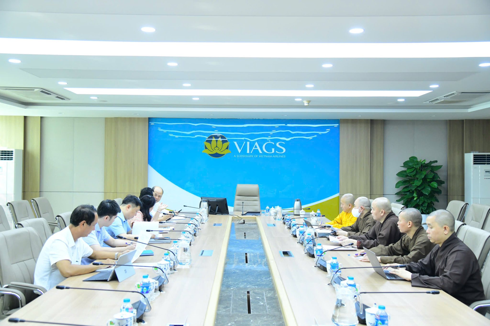 Cùng tham gia buổi làm việc có ông Phạm Thanh Phong – Giám đốc Điều Hành Cảng Hàng không quốc tế Tân Sơn Nhất; bà Đỗ Thị Ngọc Vân – Phó Tổng Giám đốc VIAGS; ông Trần Đức Hiệp – Chánh Văn phòng VIAGS.