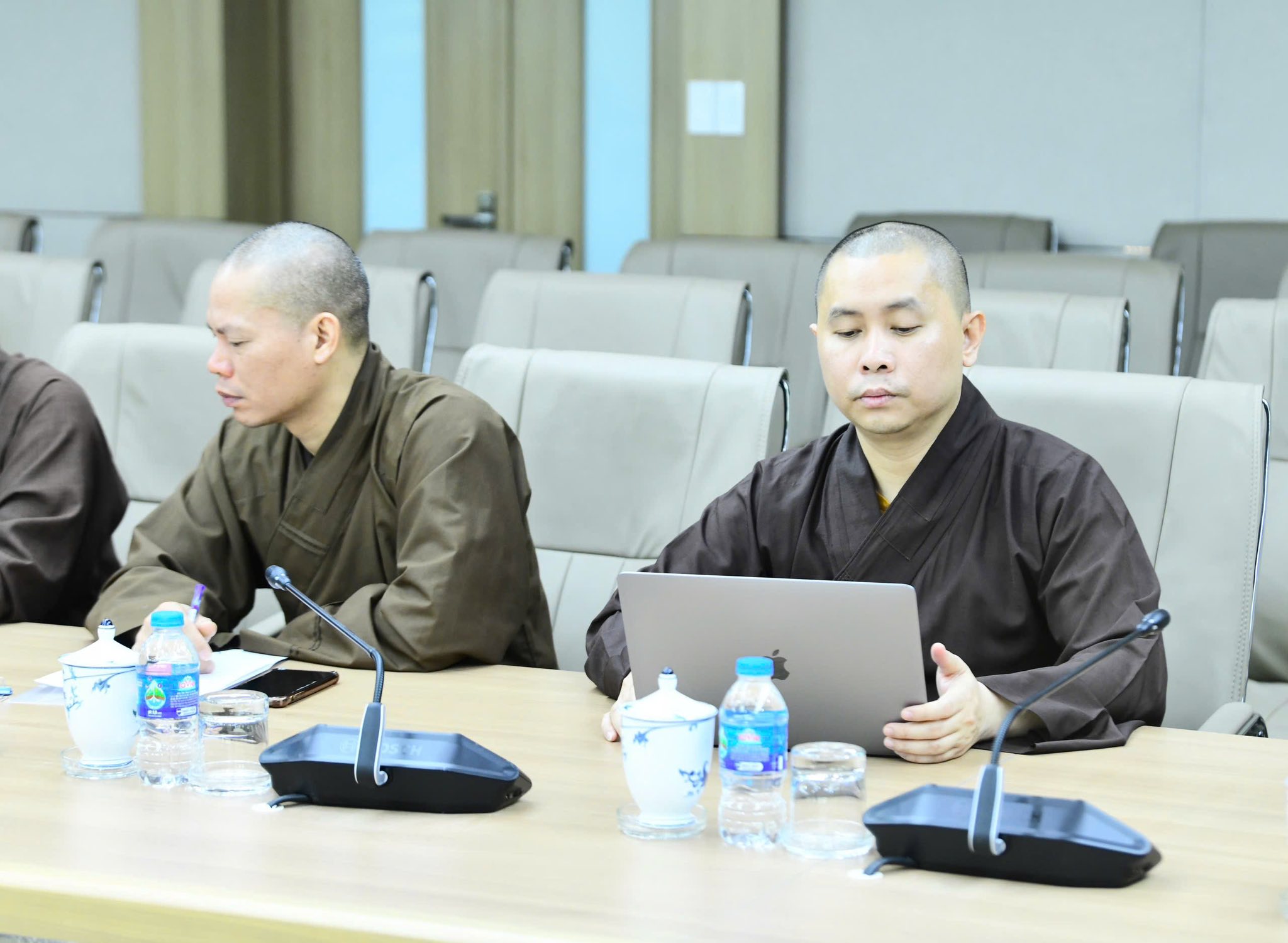 Tham gia buổi làm việc có TT. Thích Đức Thiện – Phó Chủ tịch, Tổng Thư ký BTC Đại lễ, TT. Thích Nhật Từ – Phó Chủ tịch, Phó Tổng Thư ký Thường trực Ban Tổ chức Đại lễ, chư tôn đức các Ban chuyên môn, bộ phận văn phòng phục vụ Đại lễ.
