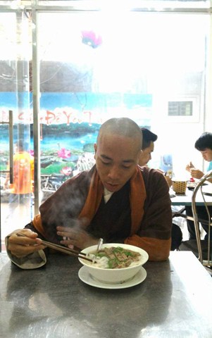 Hqua bạn em dắt sư giả này vào chỗ nhóm em nấu cơm trong viện để nấu cơm chay tặng bệnh nhân. Sư đưa 1 cái phong bì cho em xem, trên đó có ghi: Chúc mừng ngày 20/11. Xong nhắn tin hỏi em: – Con không tặng quà thầy à? Em tưởng đùa nên lấy quả chuối đưa cho sư. Sư đành chữa ngượng nên nhắn tin: – Thầy chỉ cần mọi người nói: A di đà phật với thầy thôi. Em tưởng thật nên cũng bảo mọi người nói cho thầy vui đi. Lúc đó ai cũng tin và hoan hỉ hết sức. Rồi về sư còn nhắn tin hẹn em đi uống cafe nhưng em kg đi cũng kg trả lời.