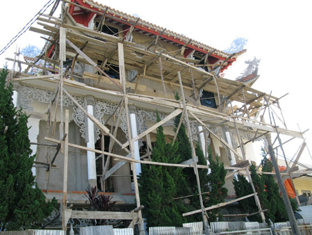 Công trình đang sửa chữa của chùa Tuệ Quang