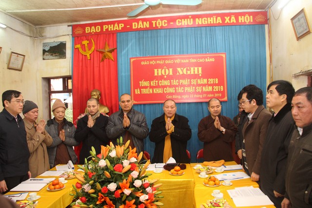 Chứng minh chủ trì Hội nghị có HT. Thích Gia Quang – Phó chủ tịch HĐTS T.Ư GHPGVN – trưởng BTS GHPGVN tỉnh Cao Bằng; TT.Thích Thanh Đường – Phó TT BTS GHPGVN tỉnh Cao Bằng; ĐĐ.Thích Thanh Hải – Phó Trưởng BTS GHPGVN tỉnh Cao Bằng; ĐĐ.Thích Thanh Hậu – Chánh văn phòng BTS GHPGVN tỉnh Cao Bằng, cùng chư Tôn đức Tăng, Ni ban Trị sự GHPGVN tỉnh Cao Bằng.