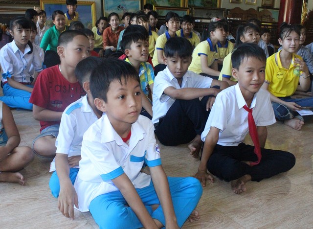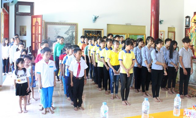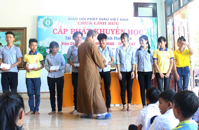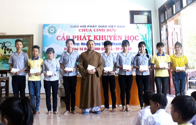 100 học sinh tại thôn Thạch Tân và phật tử trẻ chùa Linh Bửu có thành tích xuất sắc trong năm học vừa qua được cấp khuyến học (mỗi phần trị giá 300 nghìn đồng tiền mặt).