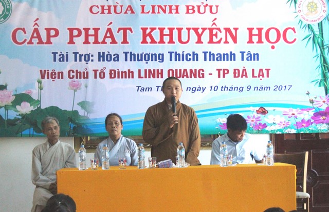 ĐĐ.Thích Viên Hải, trụ trì chùa Linh Bửu đã chuyển lời nhắn nhủ của HT.Thích Thanh Tân đến với các em học sinh, phật tử: “Dù đang hành đạo xa quê, nhưng Hòa thượng vẫn luôn lo nghĩ về quê nhà, nhất là các thế hệ học sinh trẻ tuổi; mong muốn các cháu tại quê nhà cố gắng học tập tốt để sau này làm người tốt giúp ích đời…”.