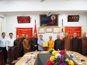 Đón tiếp phái đoàn có Hòa thượng Thích Thanh Chính - Ủy viên thường trực HĐTS GHPGVN, Phó trưởng Ban thường trực BTS GHPGVN...