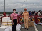 PTVN - Chùa Bình Phước hỗ trợ 300 suất cơm cho người dân trở về quê tại chốt kiểm soát cầu Cổ Chiên