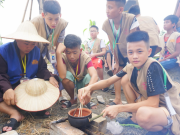 Các em học sinh từ lớp 4 đến lớp 12 từ nhiều tỉnh thành cùng lội ruộng tìm mót lúa, nấu cơm chay chỉ...