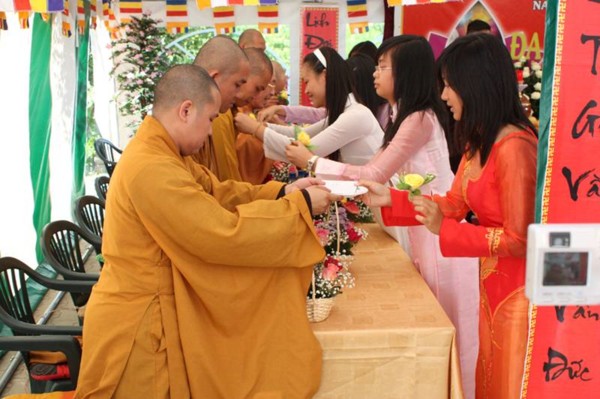 Để chia sẻ niềm hạnh phúc cho những ai còn cha còn mẹ, cảm thương với những ai không còn được niềm hạnh phúc ấy, ban tổ chức buổi lễ long trọng gắn những bông hoa hồng lên ngực cho mỗi Phật tử tham gia buổi lễ.