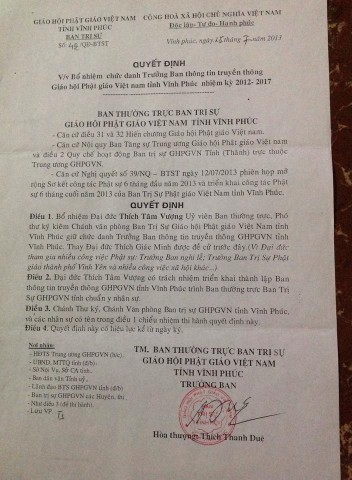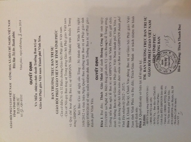 CTV HM: Như vậy là BTS PG Vĩnh Phúc làm sai rồi ạ! (Theo Điều 33, Hiến chương Giáo hội Phật giáo Việt Nam và Điều 1, Quy chế hoạt động Ban Trị sự Tỉnh – Thành hội Phật giáo thì mỗi BTS PG tỉnh, thành đều có một Phó Thường trực).