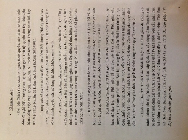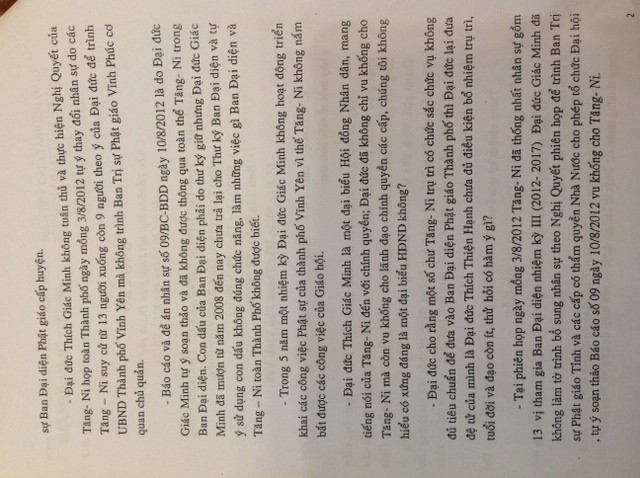 Trong phạm vi bài viết này, chúng tôi chỉ xin đề cập đến vấn đề chính là những sai phạm trong việc ra quyết định của BTS PG tỉnh đối với việc bãi miễn chức vụ Phó Ban Thường trực BTS, Trưởng BTS PG Tp.Vĩnh Yên và thậm chí là đề nghị bãi miễn chức vụ đại biểu HĐND tỉnh và thành phố của ĐĐ.Thích Giác Minh (ĐĐ.TGM).