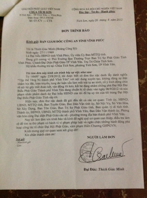Bài viết trên do tác giả là một cộng tác viên báo Giác Ngộ viết, cá nhân tôi không phải là đệ tử, Phật tử của các vị có tên trên, tư liệu có nguồn cung cấp nên thông tin và nhận định đưa ra hoàn toàn, khách quan, trung thực, công bằng. Tôi viết phóng sự này với mong muốn góp phần đưa sự việc về đúng bản chất, góp phần xây dựng, chấn chỉnh Giáo hội và bảo vệ nhân phẩm, danh dự của người bị xúc phạm, vạch trần hành vi của một số phần tử xấu, không nhằm mục đích vu cáo, phá hoại.