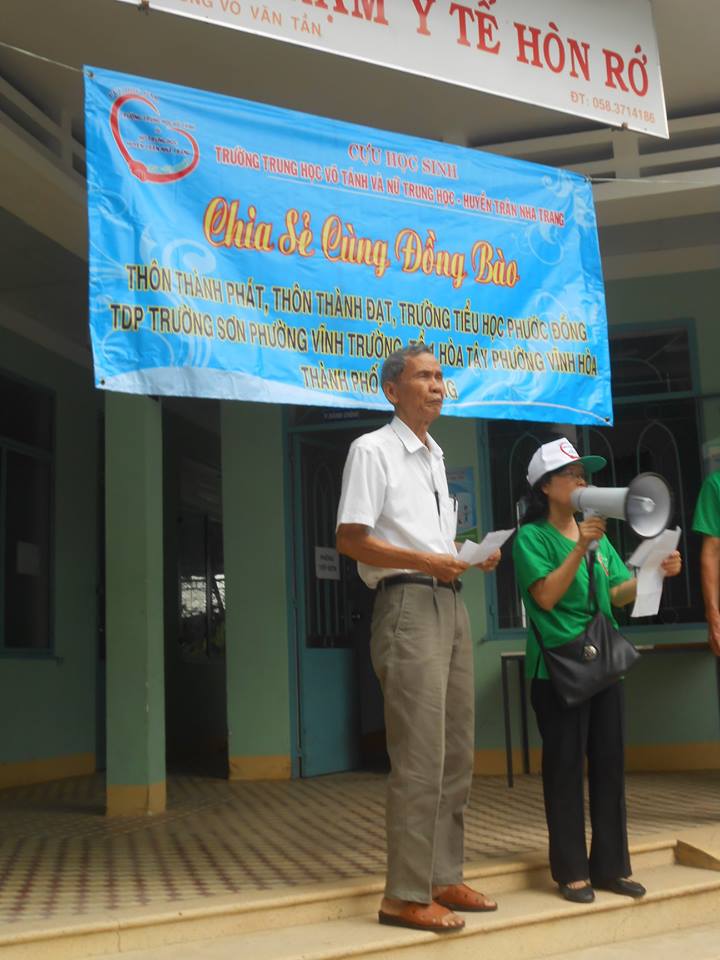 Tham gia cùng nhóm cựu học sinh hai trường có quý Thầy: Phan Văn Ôn, Trần Đăng Lộc, Phạm Liêu (Võ Tánh) và Nguyễn Tri Hồng (Nũ Trung Học). Ngoài ra, Đạo Tràng Từ Bi cũng tham gia cùng đoàn cứu trợ. Bằng nguồn đóng góp tự nguyện của quý Thầy Cô, cựu học sinh và thân hữu Trung học Võ Tánh và Nữ Trung Học-Huyền Trân Nha Trang với tổng số tiền là: 281.514.000đ.