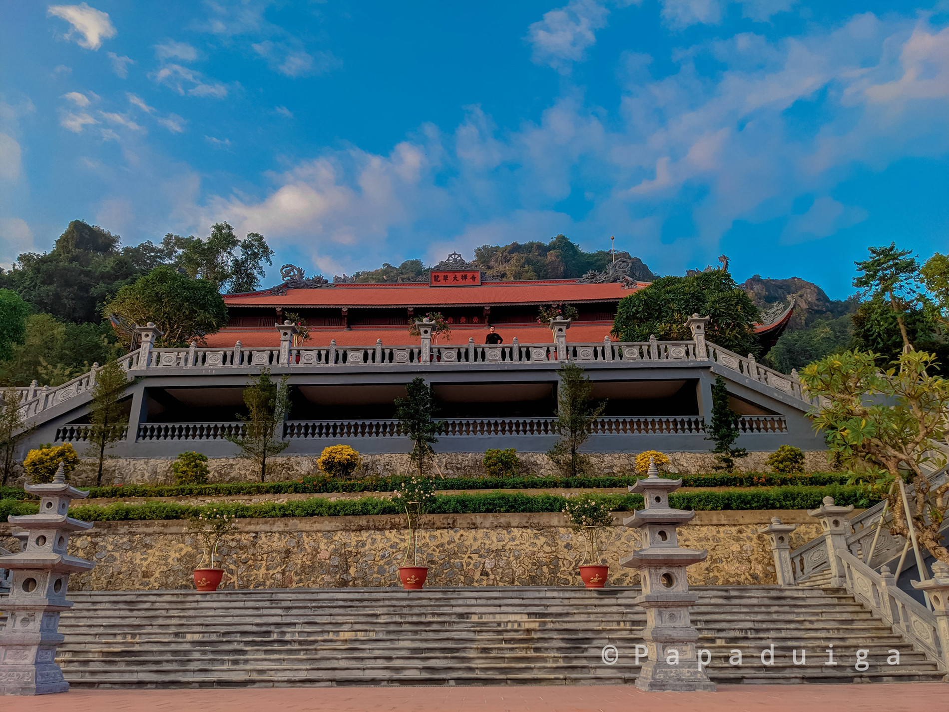 Trục trung tâm gồm bảo tháp thờ Phật, bảo điện, chùa Thượng, chùa Hạ, cổng tam quan.