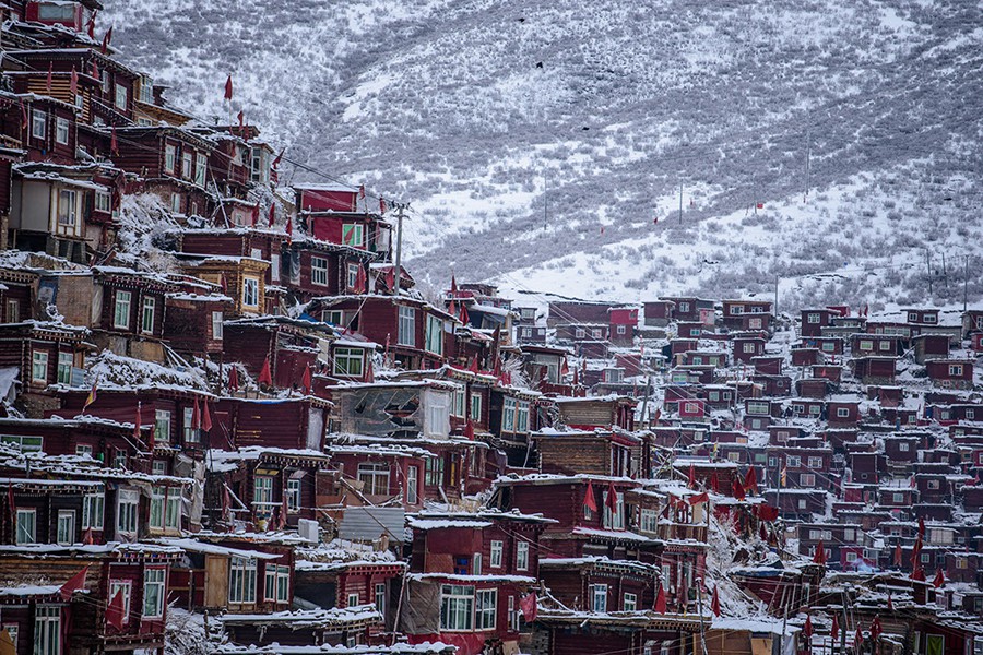 Sau gần 40 năm xây dựng thì danh tiếng của Larung Gar đã có nhiều người biết đến, hiện nay có hơn 40.000 phật tử đang theo học tại đây. Trong đó, số lượng nữ giới đông hơn so với nam giớiTọa lạc giữa những ngọn đồi trải dài, làng Larung Gar luôn khiến các du khách cảm thấy choáng ngợp với một vùng đất được bao phủ bởi vô số ngôi nhà gỗ đỏ, nhỏ xinhKhông chỉ là nơi sinh sống của các nhà sư, những người dân Tây Tạng cũng sống trong khu vực này Người dân ở đây duy trì cuộc sống nhờ vào những nguồn quyên góp, cho thuê nhà nghỉ hoặc mở các cửa hàng nhỏ, chính vì vậy Larung Gar luôn chào đón du khách đến thăm Nếu đến thăm quan ngôi làng, Larung Gar chỉ có hai nhà nghỉ nhỏ để bạn có thể nghỉ ngơi và tham quan, tuy nhiên, bạn phải đặt chỗ trước vì hầu như 2 nhà nghỉ này lúc nào cũng kín chỗ Trong một chuyến tham quan của mình, nhiếp ảnh gia Wanson Luk cho biết: “Tôi đã ở hai ngày ở trung tâm Phật giáo và tham gia vào một số nghi lễ. Dân làng ở đây rất nhiệt tình, lạc quan và cực kỳ hiếu khách, tôi vô cùng ngạc nhiên về cách họ quan niệm về cái chết” NextTuy nhiên, sẽ có một khu vực mở ở trước hội trường chính của tu viện là nơi mà cả nhà sư và ni cô đều được phép lui tớiNgười dân ở đây duy trì cuộc sống nhờ vào những nguồn quyên góp, cho thuê nhà nghỉ hoặc mở các cửa hàng nhỏ, chính vì vậy Larung Gar luôn chào đón du khách đến thămNếu đến thăm quan ngôi làng, Larung Gar chỉ có hai nhà nghỉ nhỏ để bạn có thể nghỉ ngơi và tham quan, tuy nhiên, bạn phải đặt chỗ trước vì hầu như 2 nhà nghỉ này lúc nào cũng kín chỗTrong một chuyến tham quan của mình, nhiếp ảnh gia Wanson Luk cho biết: “Tôi đã ở hai ngày ở trung tâm Phật giáo và tham gia vào một số nghi lễ. Dân làng ở đây rất nhiệt tình, lạc quan và cực kỳ hiếu khách, tôi vô cùng ngạc nhiên về cách họ quan niệm về cái chết”Nằm ở hạt Sertar, Thung lũng Larung Gar thuộc khu vực Tây Tạng truyền thống, phía tây tỉnh Tứ Xuyên. Mặc dù nằm ở một vị trí xa xôi, cách trở, nhưng đây là nơi có học viện Phật giáo Larung Gar – cơ sở Phật giáo lớn nhất thế giới Tọa lạc giữa những ngọn đồi trải dài, làng Larung Gar luôn khiến các du khách cảm thấy choáng ngợp với một vùng đất được bao phủ bởi vô số ngôi nhà gỗ đỏ, nhỏ xinh Kiến trúc đặc trưng nơi đây không chỉ là một ngôi làng toàn những ngôi nhà màu đỏ mà điều khiến nhiều người bất ngờ là tất cả các ngôi nhà này đều không có hệ thống sưởi ấm và nhà vệ sinh Hơn thế, các ngôi nhà tại Larung Gar còn được xây sát nhau đến nỗi gần như là nhà nọ chồng lên đỉnh nhà kia khi nhìn từ xa Được xây dựng năm 1980, Larung Gar nằm giữa khuôn viên rộng lớn và hoang vu, cách thị trấn Sertar, Tây Tạng chừng 15 km và cách Thành Đô, Trung Quốc khoảng 650 km Để tới đây, du khách phải ngồi trên xe bus tới 20 giờ đồng hồ, do đó, nơi này gần như tách biệt với thế giới bên ngoài Vì địa hình di chuyển khó khăn, lại cách xa thị trấn nên những năm đầu gây dựng, số lượng phật tử đến học ở Larung Gar còn thưa thớt. Dần dần, số lượng tăng ni tới học tăng mạnh Sau gần 40 năm xây dựng thì danh tiếng của Larung Gar đã có nhiều người biết đến, hiện nay có hơn 40.000 phật tử đang theo học tại đây. Trong đó, số lượng nữ giới đông hơn so với nam giới Các nhà sư và ni cô sống trong các ngôi nhà gần học viện và được ngăn cách, phân chia khu vực sinh sống dựa trên tuổi và giới tính Nơi ở của nam và nữ được tách biệt bởi một con đường lớn chạy xuyên qua khu vực đông đúc của những ngôi nhà màu đỏ Mọi căn nhà ở đây đều thiết kế 3 phòng, tivi bị cấm ở đây nhưng tăng ni vẫn có thể dùng điện thoại để cập nhật tình hình cuộc sống bên ngoài Theo quy định, các tăng ni, phật tử đều không được ra khỏi khu vực được phân chia của mình Tuy nhiên, sẽ có một khu vực mở ở trước hội trường chính của tu viện là nơi mà cả nhà sư và ni cô đều được phép lui tới Không chỉ là nơi sinh sống của các nhà sư, những người dân Tây Tạng cũng sống trong khu vực này Người dân ở đây duy trì cuộc sống nhờ vào những nguồn quyên góp, cho thuê nhà nghỉ hoặc mở các cửa hàng nhỏ, chính vì vậy Larung Gar luôn chào đón du khách đến thăm Nếu đến thăm quan ngôi làng, Larung Gar chỉ có hai nhà nghỉ nhỏ để bạn có thể nghỉ ngơi và tham quan, tuy nhiên, bạn phải đặt chỗ trước vì hầu như 2 nhà nghỉ này lúc nào cũng kín chỗ Trong một chuyến tham quan của mình, nhiếp ảnh gia Wanson Luk cho biết: “Tôi đã ở hai ngày ở trung tâm Phật giáo và tham gia vào một số nghi lễ. Dân làng ở đây rất nhiệt tình, lạc quan và cực kỳ hiếu khách, tôi vô cùng ngạc nhiên về cách họ quan niệm về cái chết” NextKiến trúc đặc trưng nơi đây không chỉ là một ngôi làng toàn những ngôi nhà màu đỏ mà điều khiến nhiều người bất ngờ l