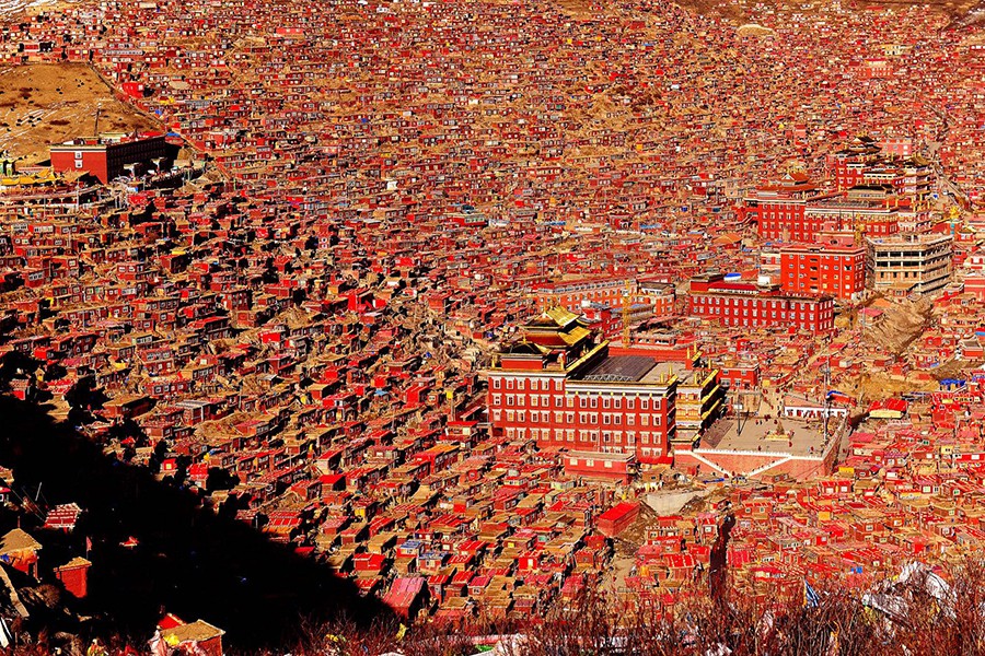 Ở độ cao 4000m so với mực nước biển, giữa những ngọn đồi xanh ngút ngàn của thung lũng Larung (thuộc cao nguyên Tây Tạng), Larung Gar được coi là “ngôi làng Phật giáo” lớn nhất thế giới với lối kiến trúc vô cùng đặc biệt.