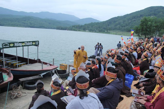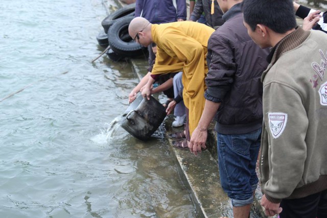 Nhân dịp này, Chư tăng và Phật tử chùa Tân Hải cũng đã tổ chức buổi lễ phóng sinh theo nghi thức Phật giáo với quy mô lớn trên dòng sông Hương Tuyền, tỉnh Hà Tĩnh, trì tụng kinh Đại Bi Sám Pháp, cầu Phật lực gia trì cho các khóa lễ siêu độ tại miền Trung được thành tựu viên mãn.