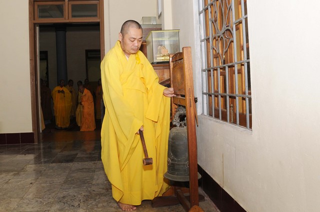 Sau khi tác lễ đối thú an cư, chư Tăng đã tác pháp Yết-ma, xướng giới tướng của nội ngoại giới và khai chuông bảng.