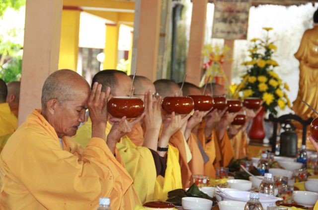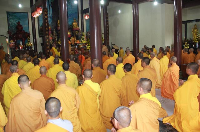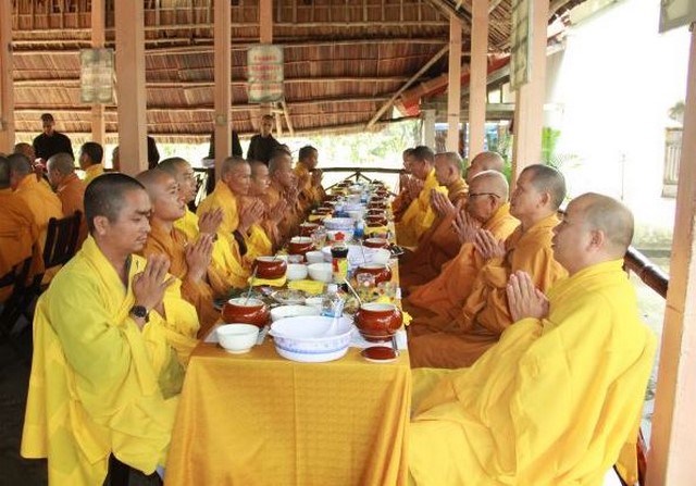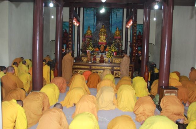 Đại chúng cũng đã thực hiện buổi Quá đường với bửa cơm lục hòa ngày đầu tiên tại trai đường và kinh hành niệm Phật tại chánh điện.