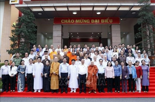 Chiều 21/6, ông Nguyễn Xuân Phúc, Ủy viên Bộ Chính trị, Chủ tịch nước cùng các Đại biểu Quốc hội (ĐBQH) TPHCM tiếp xúc cử tri là ủy viên Ủy ban MTTQ Việt Nam TPHCM, các vị nhân sĩ, trí thức, chức sắc các tôn giáo, người có uy tín, tiêu biểu trong đồng bào dân tộc, giới văn nghệ sĩ tại TPHCM.