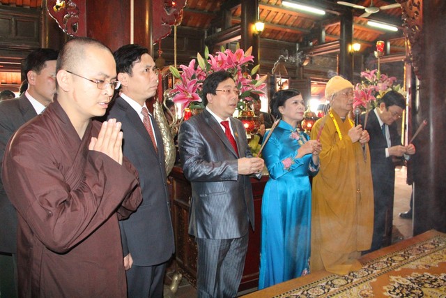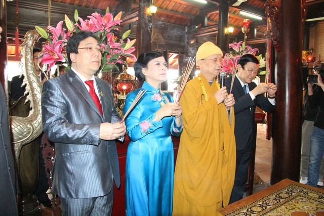 Nghi lễ dâng hương được diễn ra một cách trang trọng và thành kính, đặc biệt ấn tượng đối với đại biểu kiều bào tiêu biểu nhân dịp bà con về quê ăn Tết Cổ truyền của dân tộc và tham dự chương trình Xuân Quê Hương 2014.