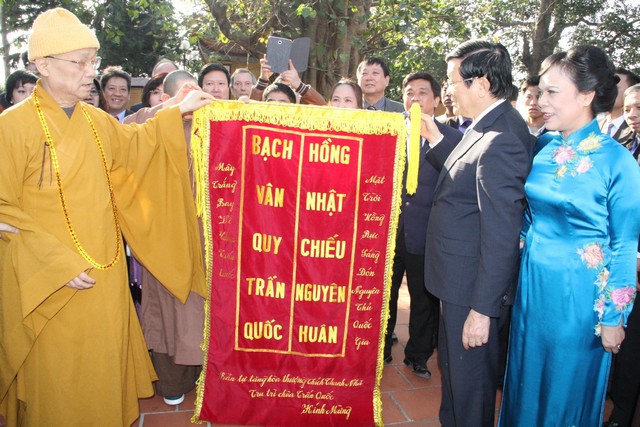 Tiếp đón đoàn có HT.Thích Thanh Nhã – Phó Trưởng ban Nghi lễ T.Ư, trụ trì chùa Trấn Quốc.