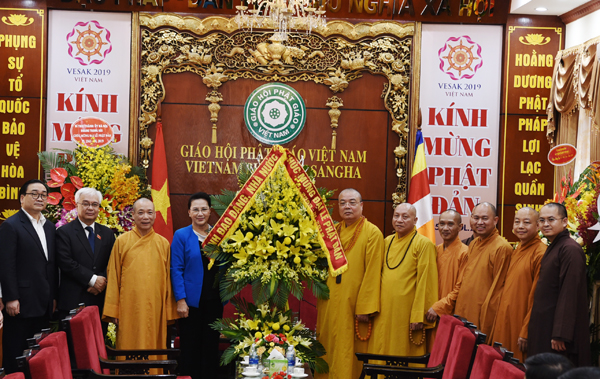 Tại buổi gặp mặt Chủ tịch Quốc hội Nguyễn Thị Kim Ngân phát biểu chúc mừng GHPGVN vừa tổ chức thành công rực rỡ Đại lễ Phật đản Liên hợp quốc – Vesak 2019 tại chùa Tam Chúc, tỉnh Hà Nam để lại ấn tượng tốt đẹp trong lòng bạn bè quốc tế. Đảng và Nhà nước đánh giá rất cao sự thành công của Đại lễ Vesak 2019 của GHPGVN đã nâng hình ảnh và vai trò vị thế của PGVN trong việc tổ chức sự kiện quan trọng.
