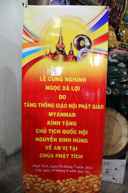 Đoàn đã tới thẳng sân bay Nội Bài để cung đón Xá lợi Phật. Đây là những viên ngọc Xá lợi do Tăng thống Hội Phật giáo Myanmar kính tặng Chủ tịch Quốc hội Nguyễn Sinh Hùng nhân chuyến viếng thăm chính thức Myanmar, và Chủ tịch Quốc hội đã dâng cúng và an vị tại chùa Phật tích – Bắc Ninh.