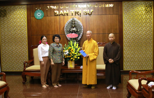 Tại Trụ sở Văn phòng BTS GHPGVN TP.HCM (Việt Nam Quốc Tự, Q.10), Trưởng lão Hòa thượng Thích Trí Quảng thân mật đón tiếp đoàn Ủy Ban Mặt Trận Tổ quốc Việt Nam TP.HCM.