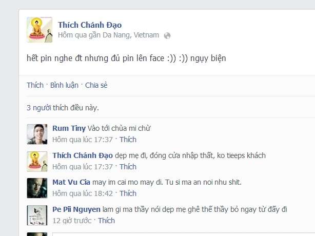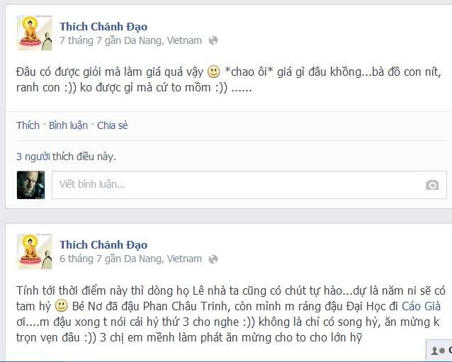 Chú tiểu thể hiện không đúng mực trên Facebook