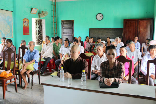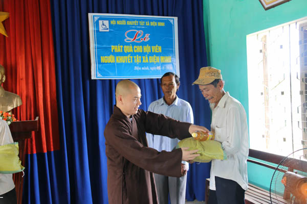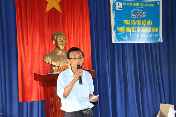 Ông Phạm Thắng – Đảng ủy viên, Chủ tịch UBMTTQVN xã Điện Minh đã thay mặt lãnh đạo xã và bà con phát biểu cảm ơn ĐĐ. Thích Thông Đạo cùng Báo Công an Tp Đà Nẵng và vợ chồng Phật tử Huỳnh Văn Lý – Nguyễn Thị Hồng đã đến trao quà, động viên bà con khuyết tật tại xã nhà.