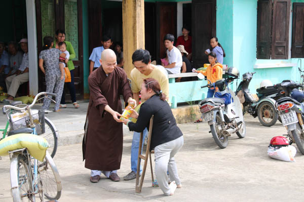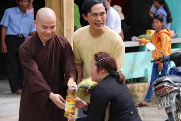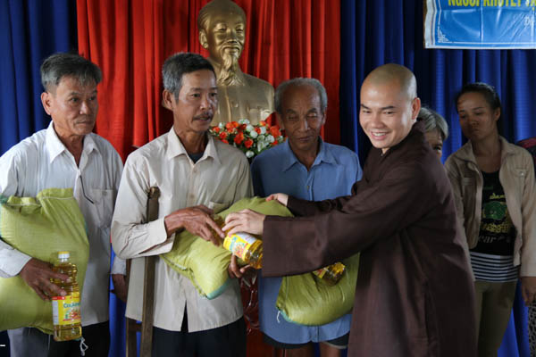 Phát biểu tại buổi trao tặng quà, ĐĐ. Thích Thông Đạo – UV HĐTS GHPGVN, Phó Ban kiêm Chánh Thư ký BTS GHPGVN Tp Đà Nẵng, Trú trì chùa Bà Đa đã gửi đến những lời thăm hỏi, động viên bà con có hoàn cảnh đặc biệt có mặt tại buổi tặng quà. Những phần quà tuy giá trị không lớn nhưng gói ghém tình cảm của những người con Phật đến với đồng bào.