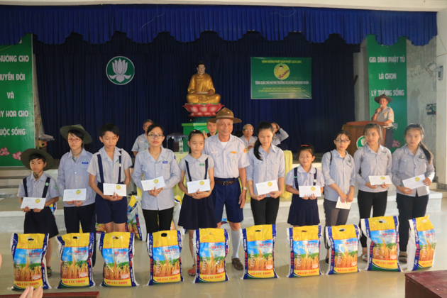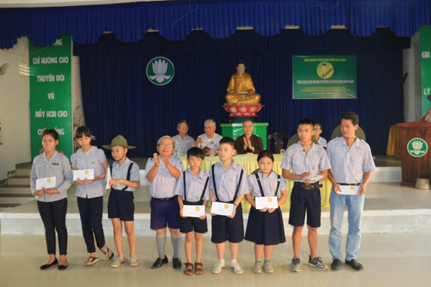 Cũng tại buổi trao tặng quà, ĐĐ. Thích Thông Đạo hứa khả sẽ trao tặng học bổng cho các đoàn sinh GĐPT Đà Nẵng thi đậu đại học trong năm nay và các đoàn sinh có hoàn cảnh khó khăn vượt khó đạt thành tích học tập giỏi trong năm học 2016 – 2017.